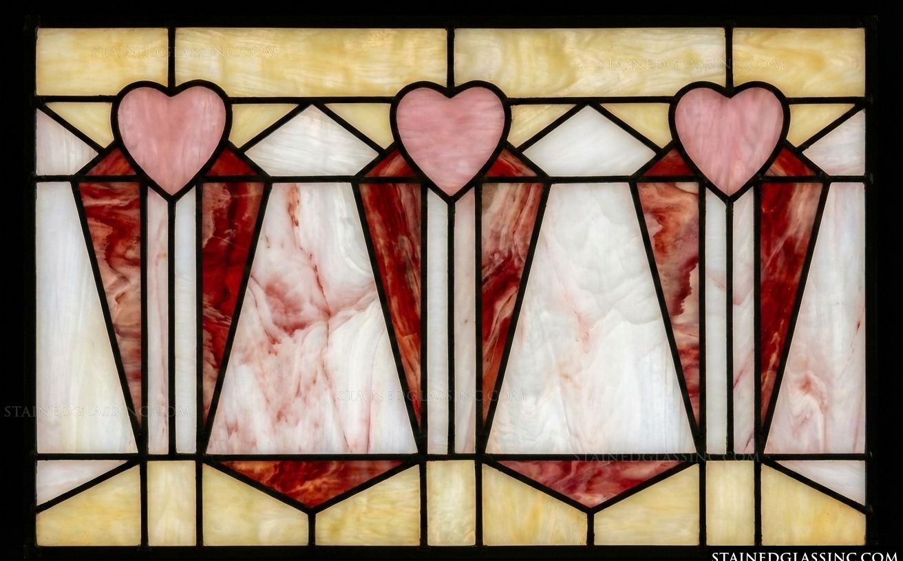 Whether you are looking to enhance a cozy bedroom window, add a splash of romantic charm to a living area, or give a heartfelt gift to someone special, this panel is designed to inspire. The crisp reds, soft pinks, and warm ambers beautifully capture and filter the sunlight, casting a warm, vibrant glow that breathes life into your decor. Experience the enduring beauty and heartfelt elegance of this magnificent architectural accent.