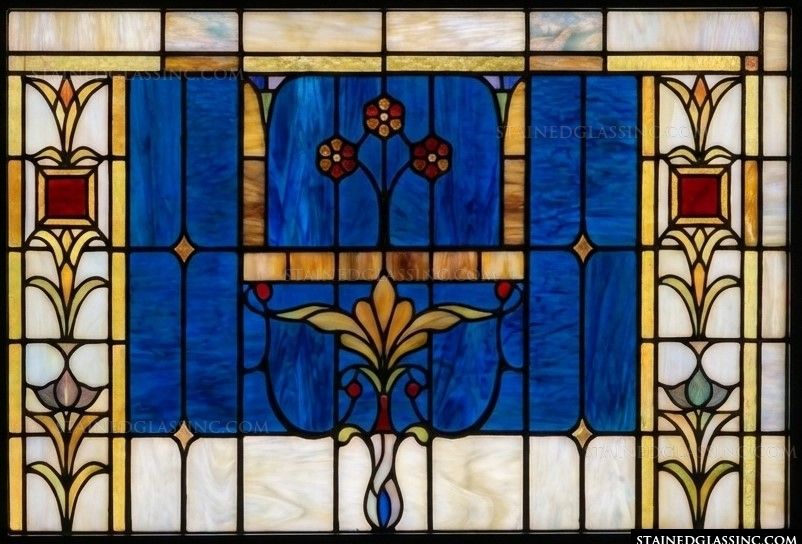 Art Nouveau Floral Motif in Cobalt and Amber Panel #16853