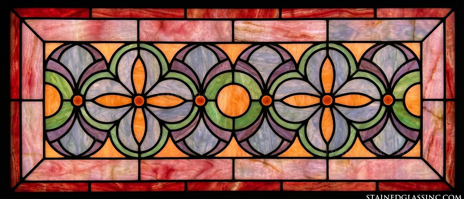 Floral Geometric Border in Rose and Sage Panel #16870