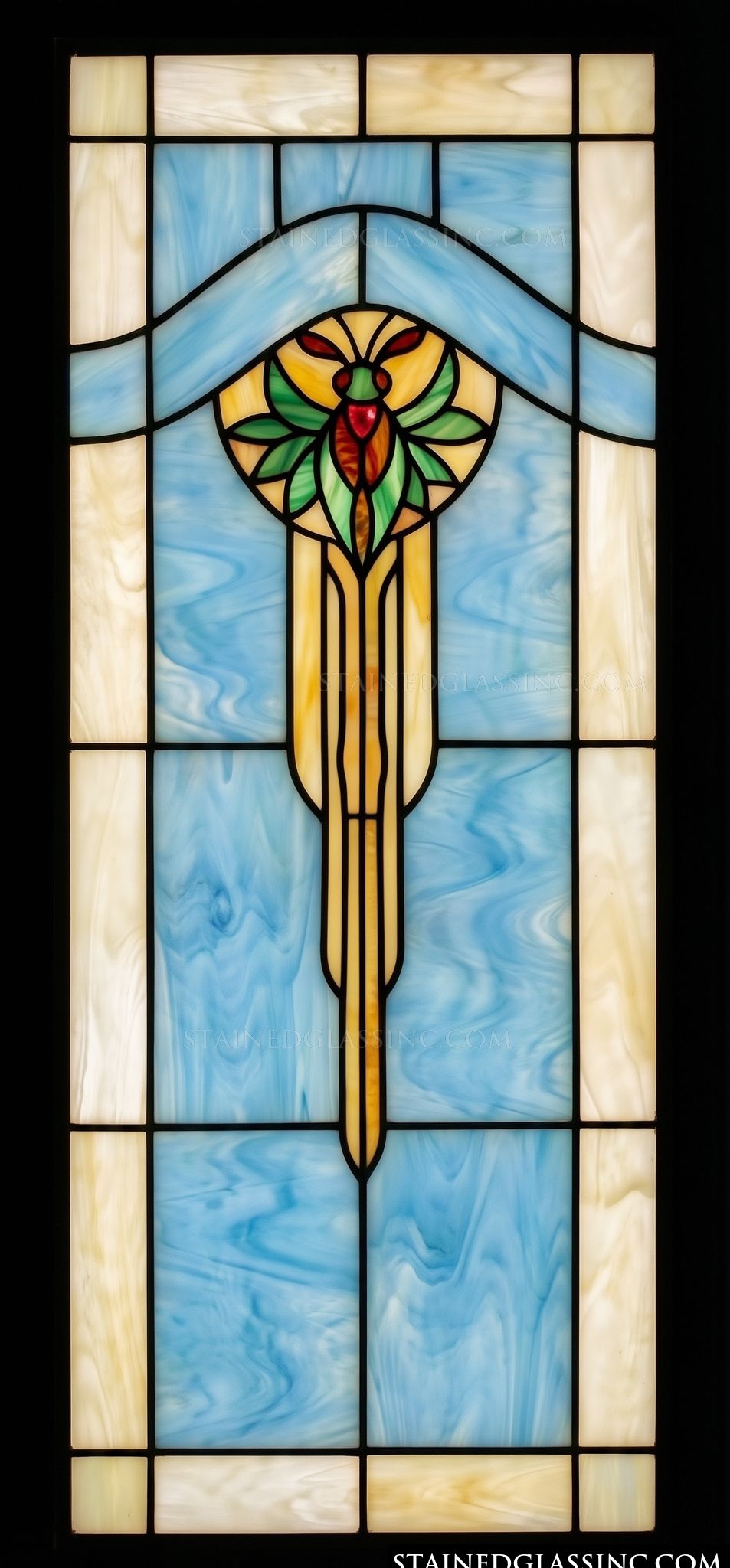 Art Deco Motif in Soft Blue and Amber Panel #16881