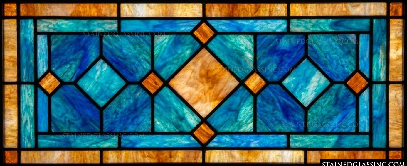 The luminous interplay of color creates a captivating atmosphere, transforming everyday light into a radiant display. Its refined, symmetrical pattern is perfect for adding a sense of structure and classic artistic beauty to transoms or any area needing a touch of polished, architectural charm.