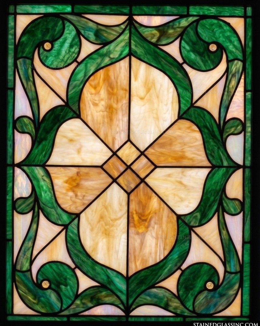Amber Blossom with Emerald Scrollwork Panel #16907