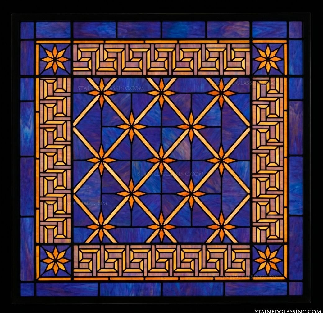 Greek Key Medallion in Cobalt and Amber Panel #16908