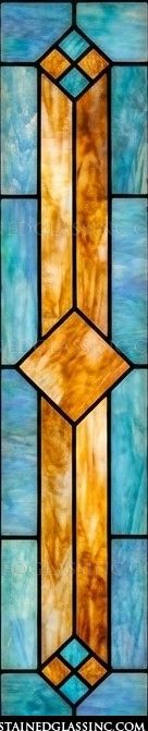 Geometric Diamond and Column in Azure and Amber Panel #16909