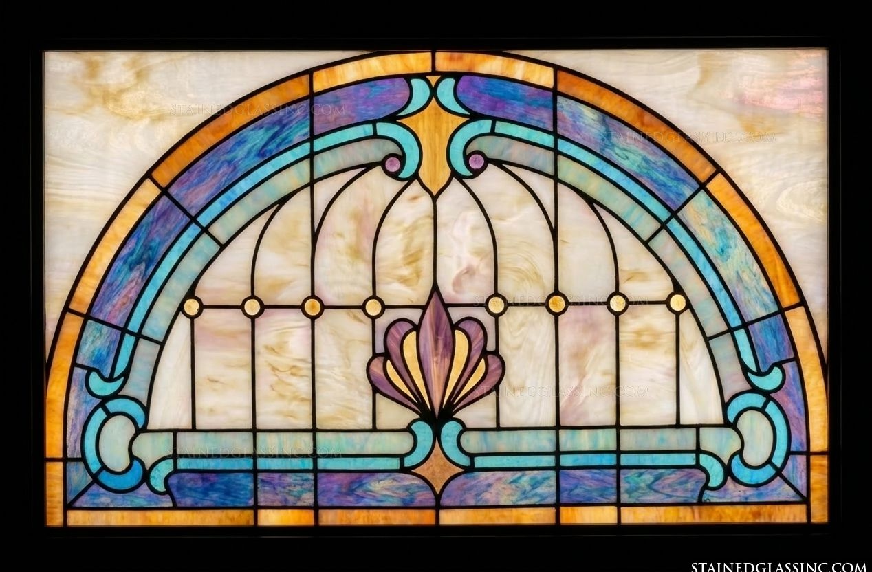 Embrace the refined elegance of the turn-of-the-century aesthetic with this sophisticated arched design. Inspired by the organic lines and fluid beauty of the Art Nouveau movement, this piece centers on a stylized fan shell, radiating grace and harmony. Its balanced composition and rhythmic structure turn any space into a gallery of light.