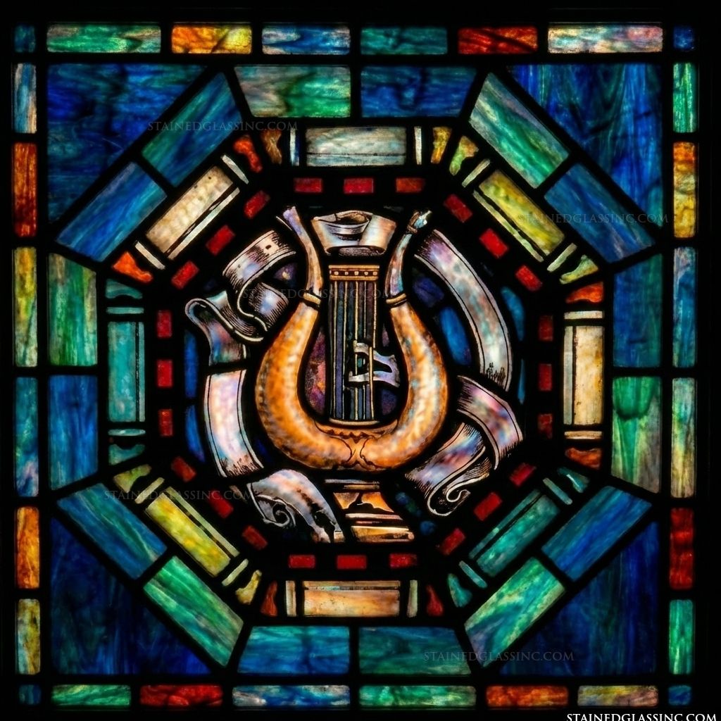 Golden Lyre in Cobalt and Emerald Panel #16939