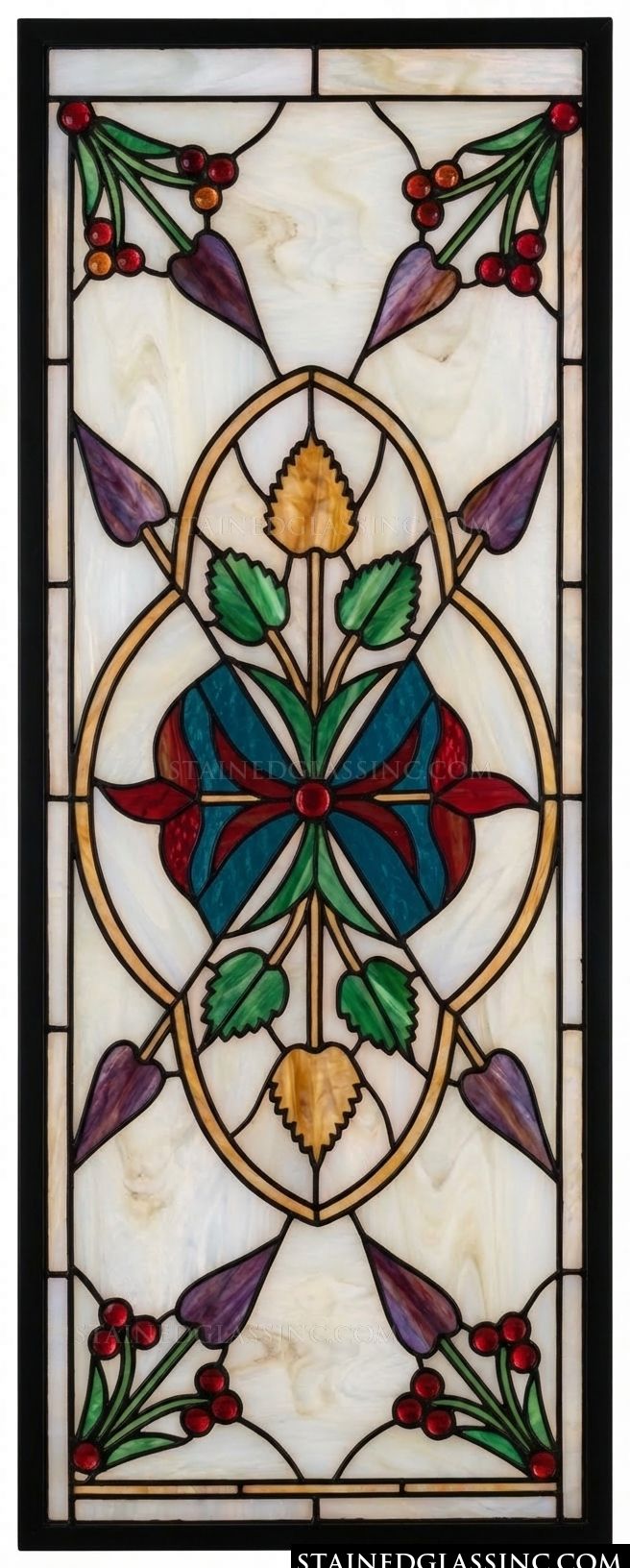 Art Nouveau Floral Medallion in Jewel Tones Panel #16942