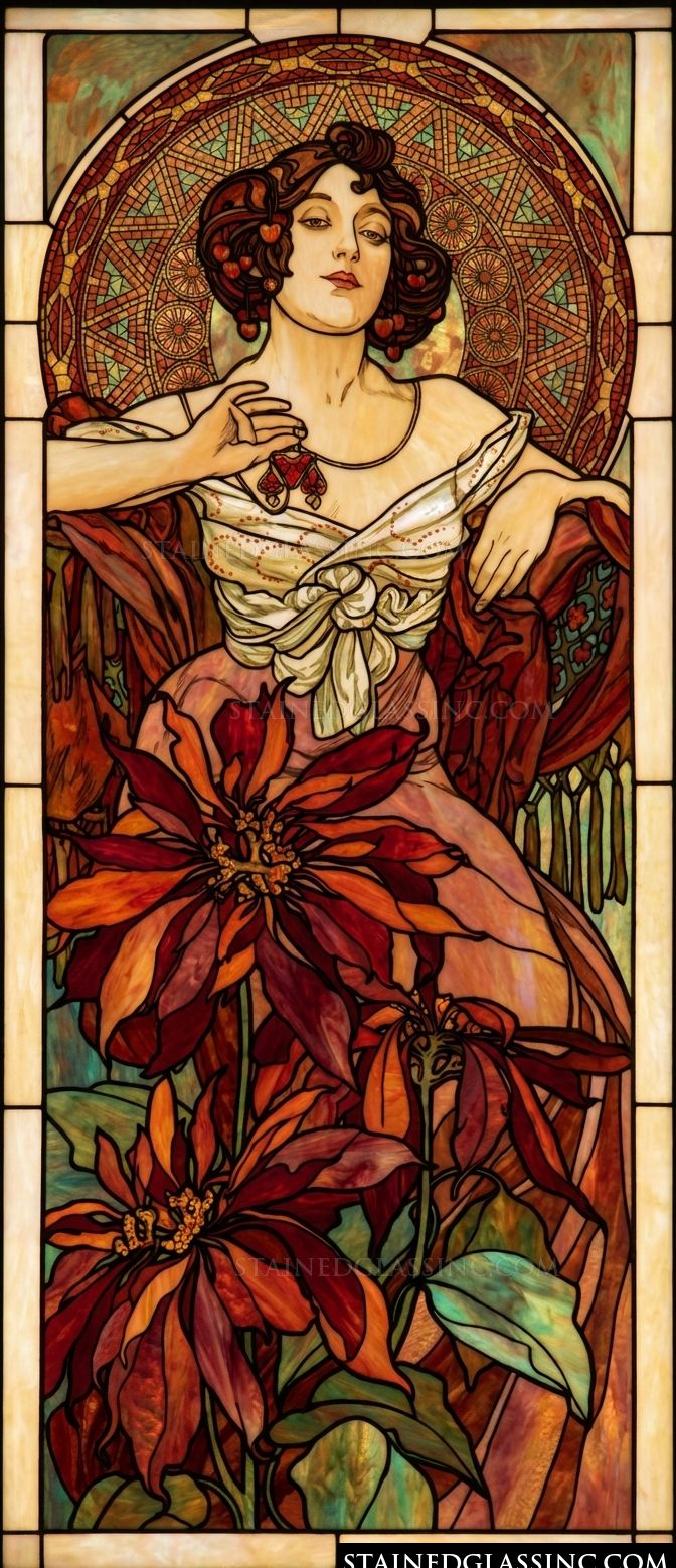 Art Nouveau Lady with Autumn Blooms Panel #17029