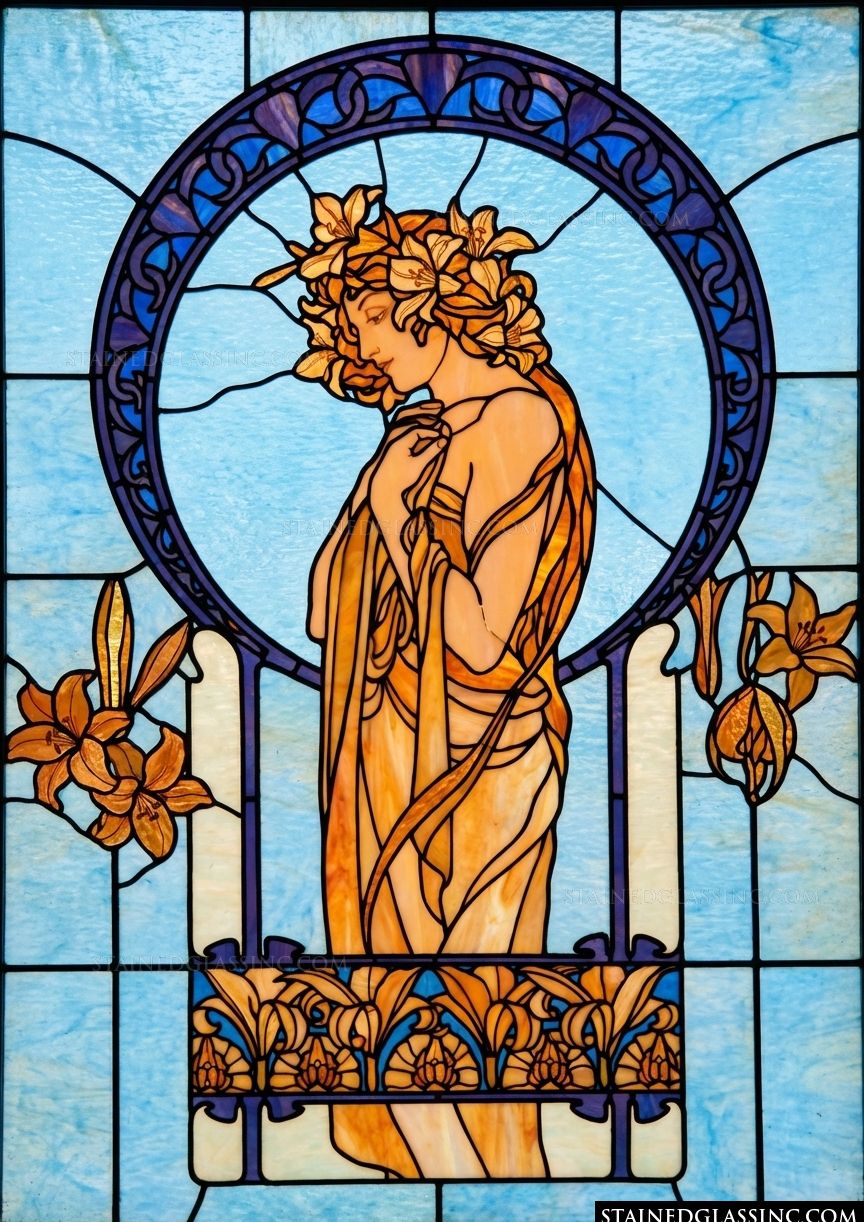Art Nouveau Maiden with Lilies Panel #17040