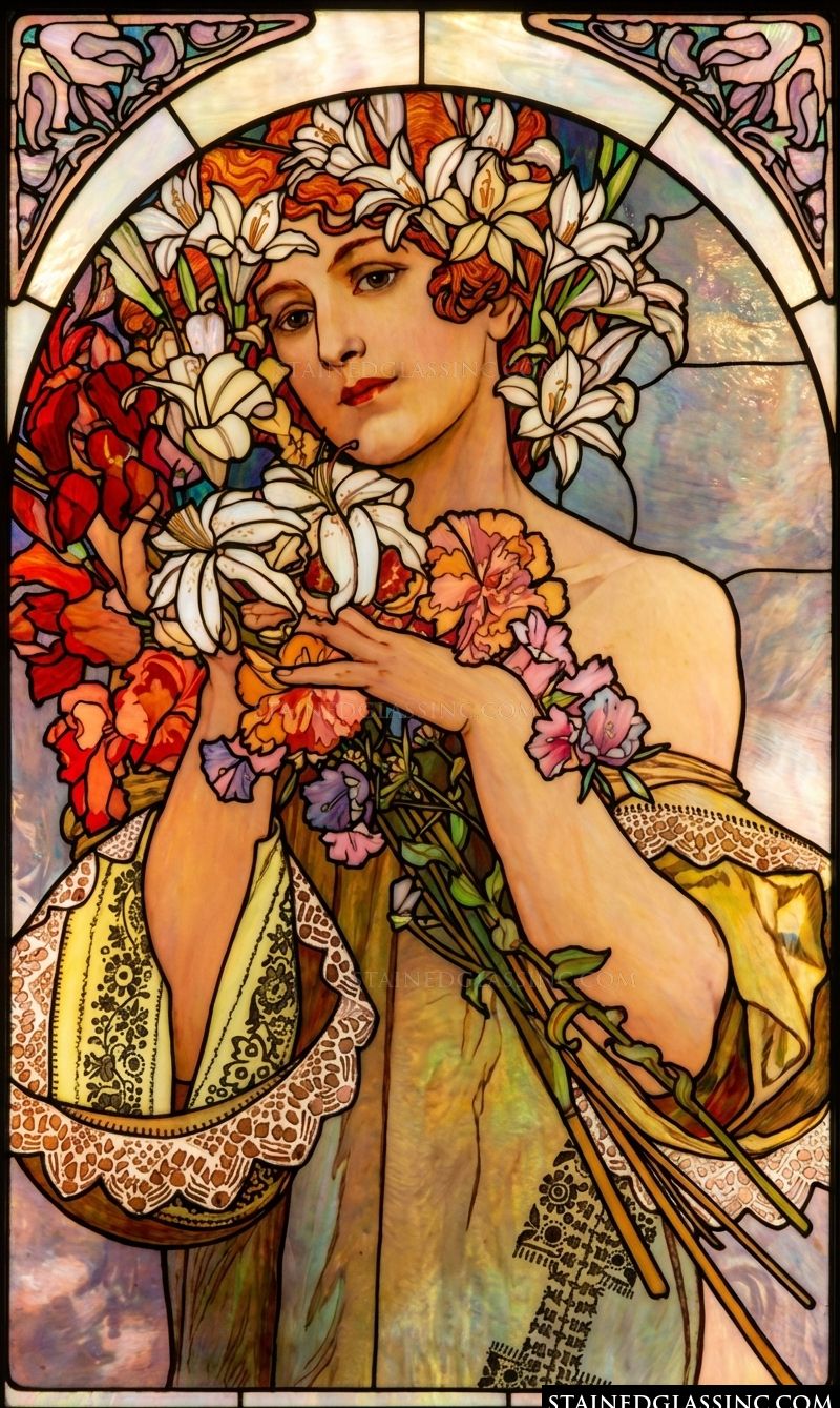 Based on artwork by Alphonse Mucha. Mucha an art nouveau era painter, illustrator, and graphic artist, lived in Paris during the Art Nouveau period. Mucha is known for his beautiful and distinctly stylised and decorative artwork.