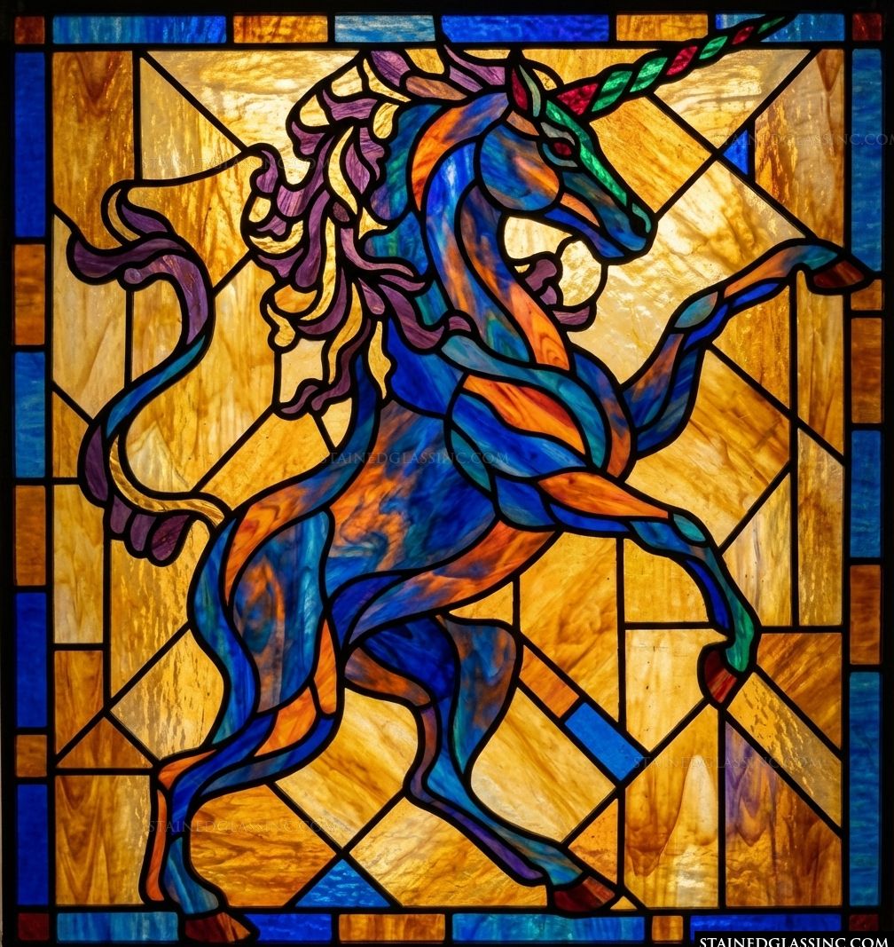 Galloping Unicorn in Amber and Sapphire Panel #17093