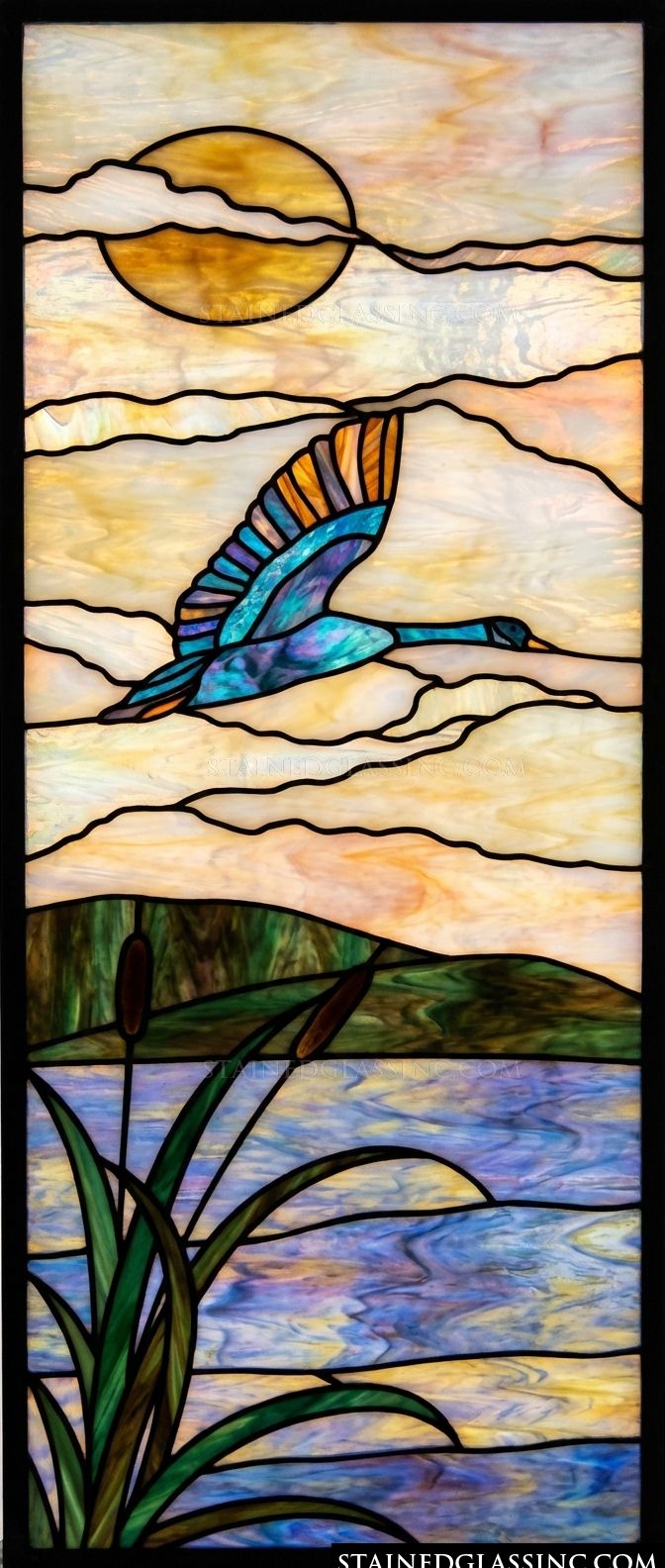 This captivating piece brings the serenity of a quiet marshland into your home. A vibrant mallard duck takes flight against a warm, glowing sun, with its wings catching the light. The scene captures a peaceful moment in nature, perfect for adding a touch of outdoor beauty to any interior space.