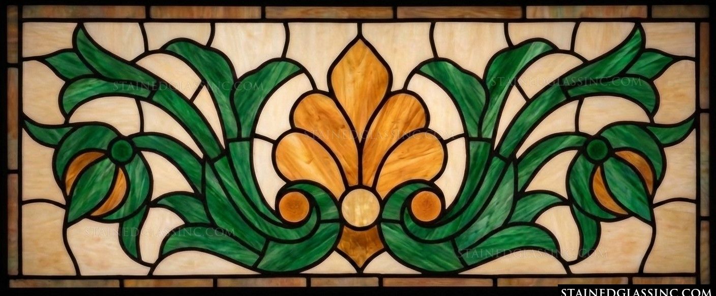 Fleur-de-Lis Scrollwork in Emerald and Amber Panel #17145