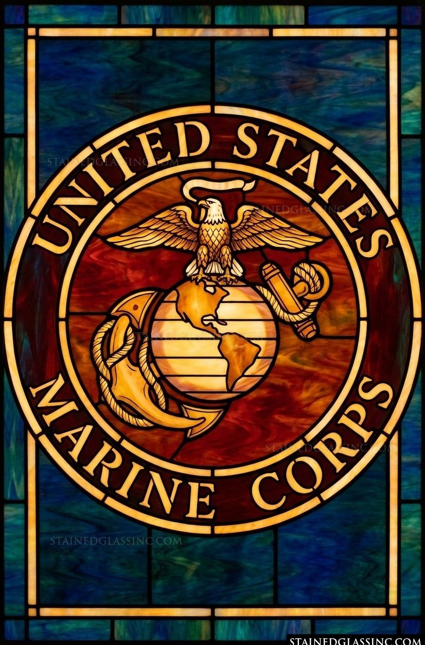 Celebrate service and tradition with this striking stained-glass-style interpretation of the United States Marine Corps emblem. The legendary Eagle, Globe, and Anchor are depicted with exceptional detail, capturing the dignity and strength of the Corps. The intricate golden imagery pops beautifully against a deep, vibrant crimson backdrop, creating a centerpiece that commands respect and admiration.
