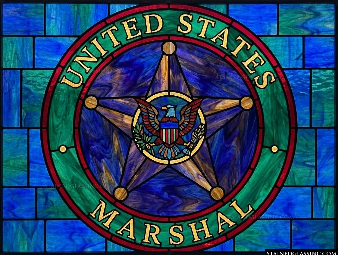Celebrate the dedication and service of our federal law enforcement with this magnificent stained-glass-style artistry. The design features the iconic star-shaped badge of the United States Marshal Service, rendered with meticulous detail. A majestic eagle stands at the center, clutching traditional symbols of peace and strength, all framed by a bold, circular border.