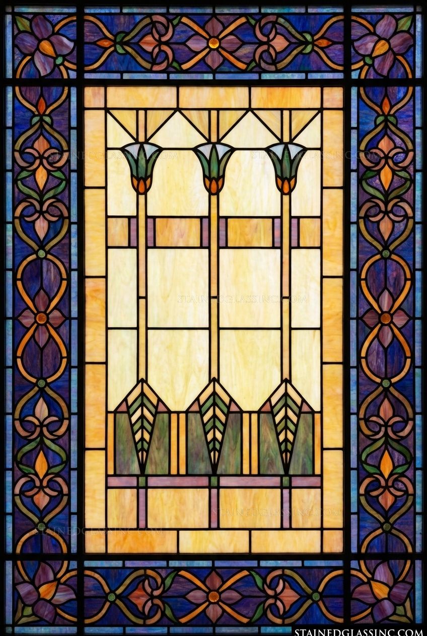 Embrace the timeless appeal of Arts and Crafts artistry with this exquisite, light-filled design. The composition is grounded by a warm, golden center, evoking the soft glow of a sunlit morning, while crisp geometric lines provide a clean, structural harmony that brings a sense of order and peace to any space.