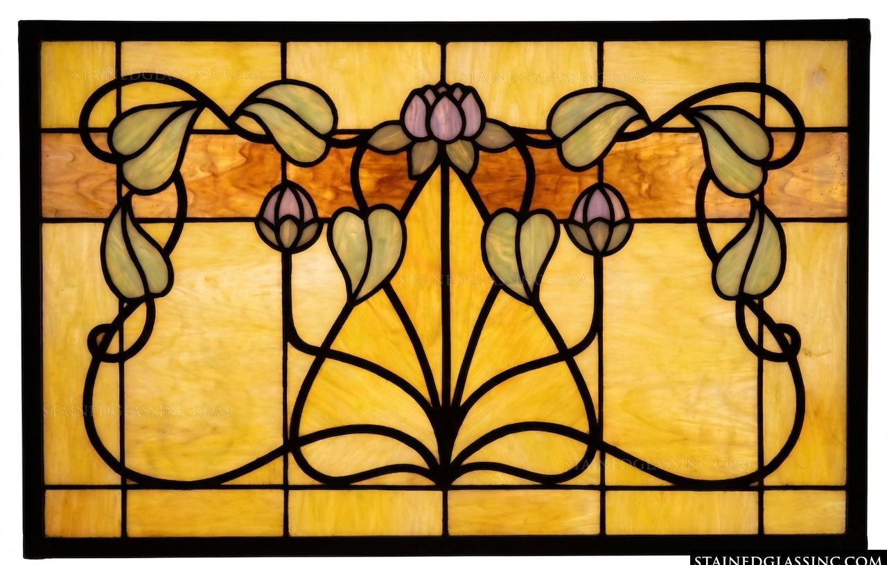 Art Nouveau Lotus Blossom in Amber Panel #17196