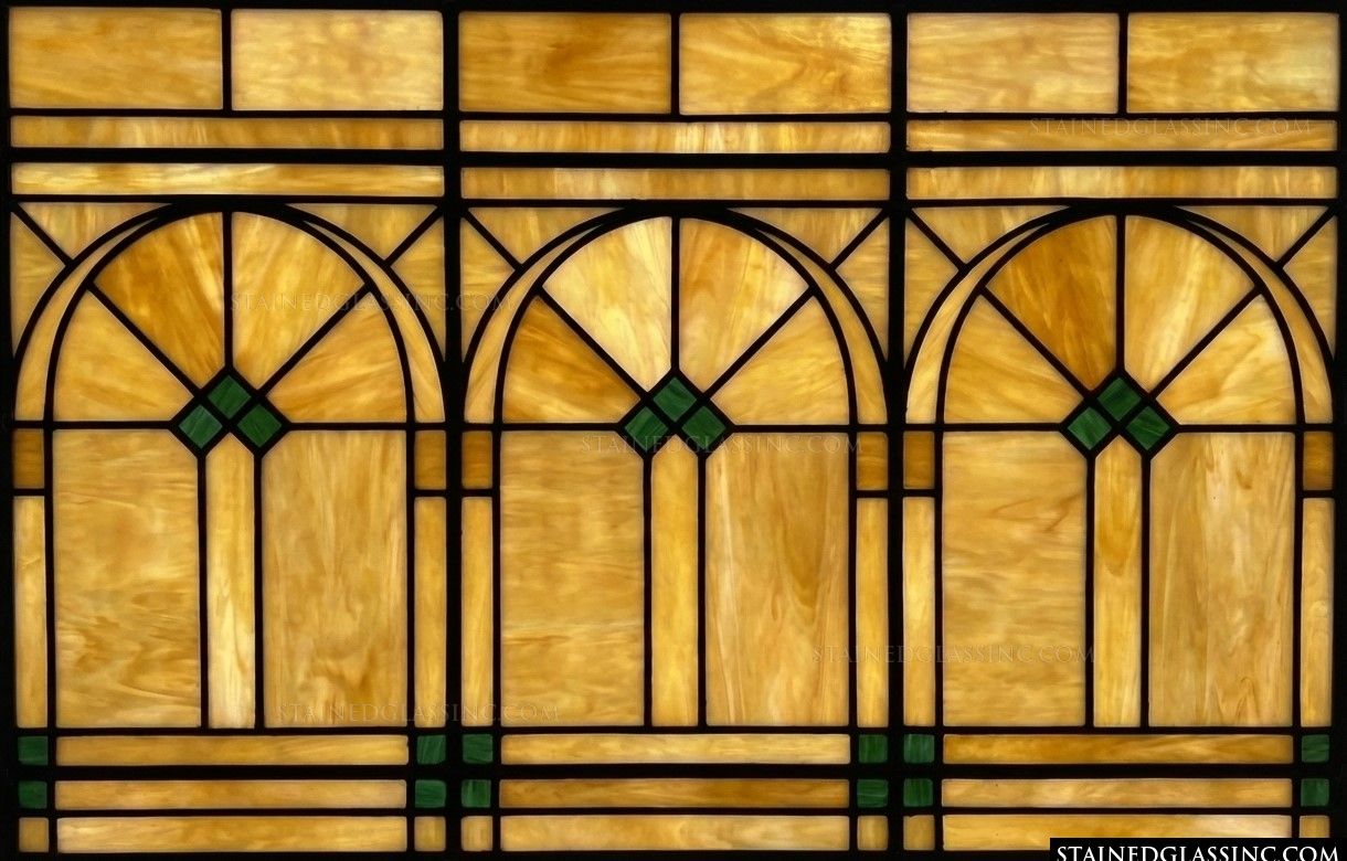 Triple Arched Geometric Pattern in Amber and Emerald Panel #17197