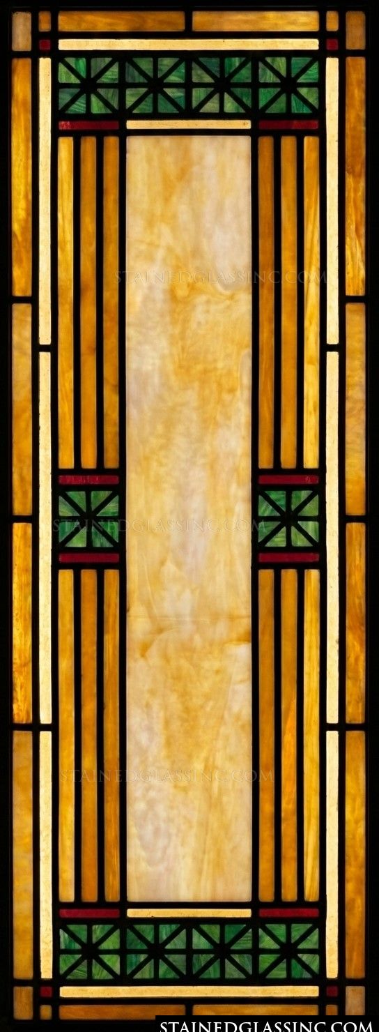 Prairie School Amber and Green Geometric Panel #17209