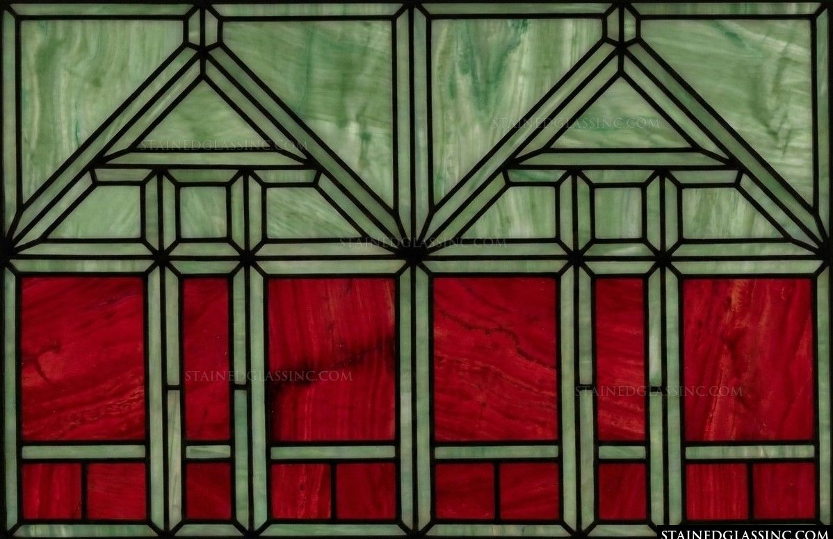 Geometric Gable Pattern in Crimson and Mint Panel #17215