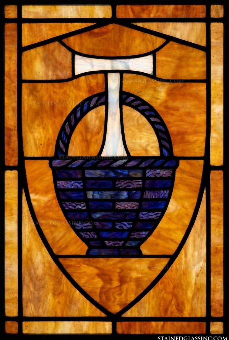 Celebrate a powerful moment of faith with this beautiful stained-glass-style design. The composition centers on a finely detailed basket, a classic symbol evoking the miracle of the loaves. The deep, rich blue tones of the basket offer a striking contrast to the warm, glowing amber background, creating a sense of peaceful abundance.