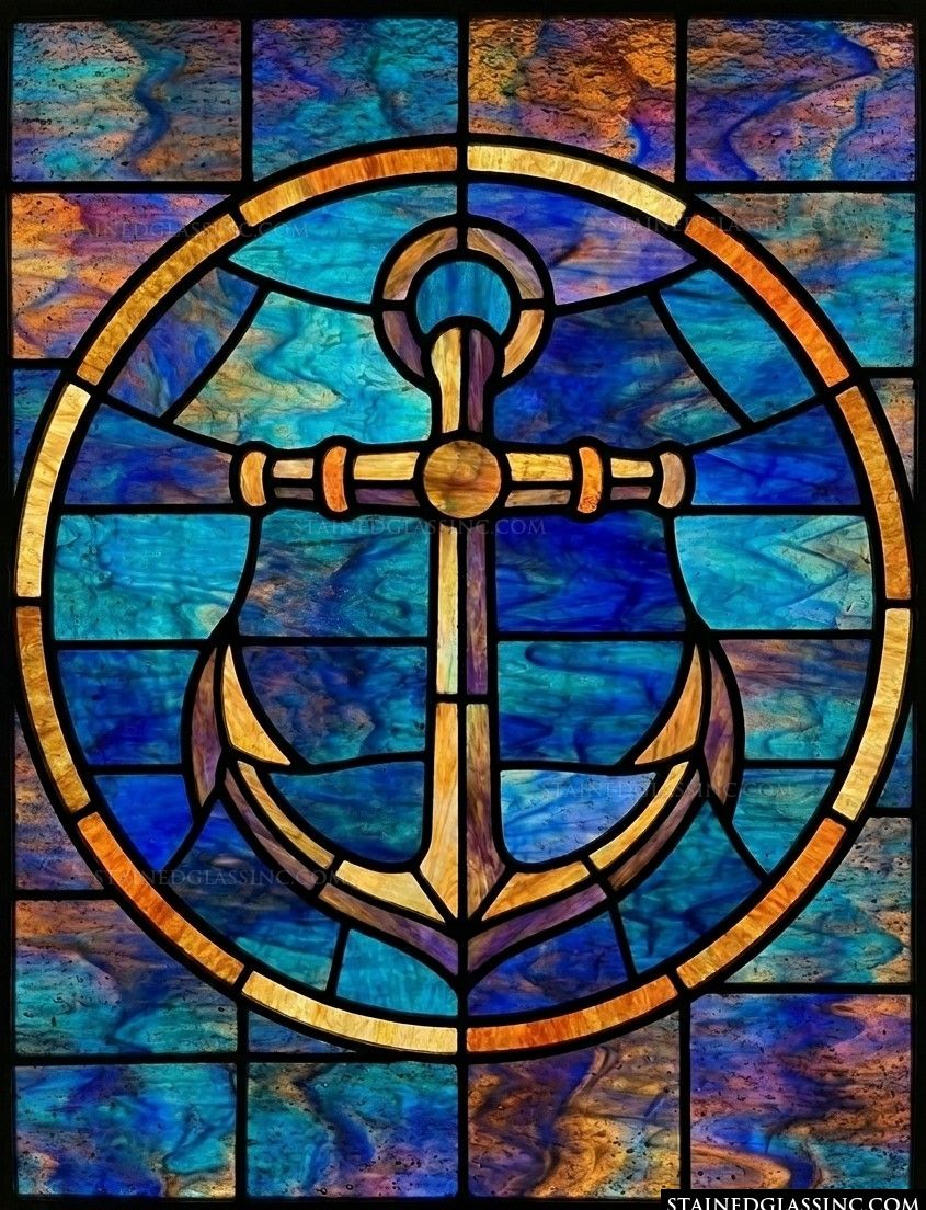 Embrace a powerful symbol of steadfast hope with this luminous design. The central anchor, a timeless representation of stability and faith, stands as a beacon of strength, rendered in rich, warm hues that contrast beautifully against a deep, serene sea of cobalt and aquatic blues.