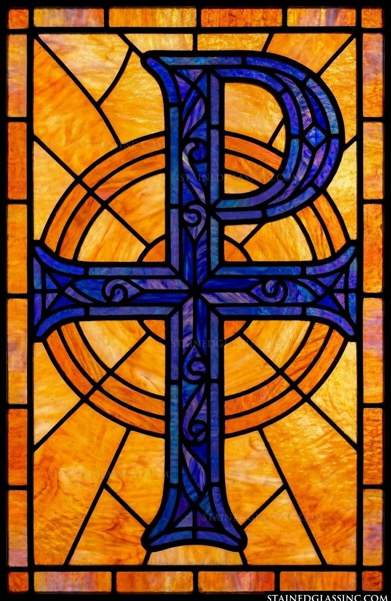 Chi Rho Symbol in Cobalt and Amber Panel #17287