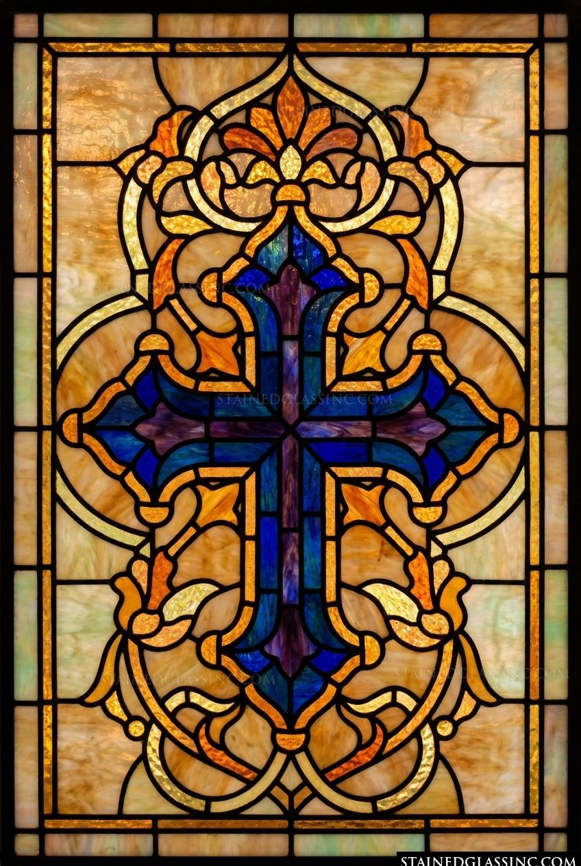 Ornate Royal Blue Cross with Golden Scrollwork Panel #17309