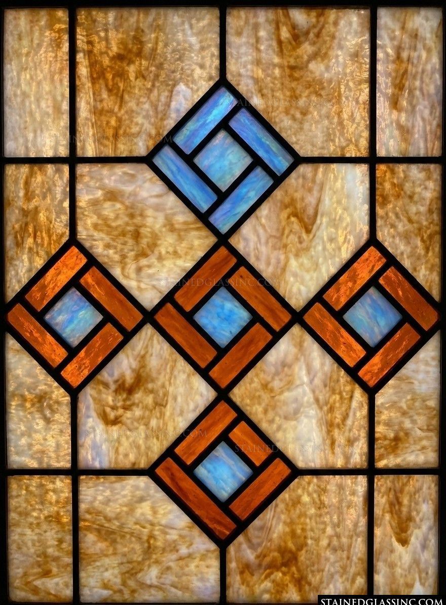 Bring a touch of timeless sophistication to your space with this elegant stained-glass-style design. The composition centers on a harmonious arrangement of diamond medallions, creating a clean, architectural aesthetic that elevates any room with its classic charm.
