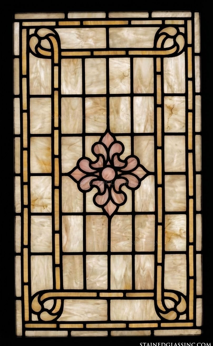 Embrace the refined beauty of this stained-glass-style artistry. The design centers on a gracefully stylized acanthus motif, rendered in soft, romantic hues that draw the eye. Its symmetrical composition and clean, geometric framing bring a sense of order and tranquility to your home.