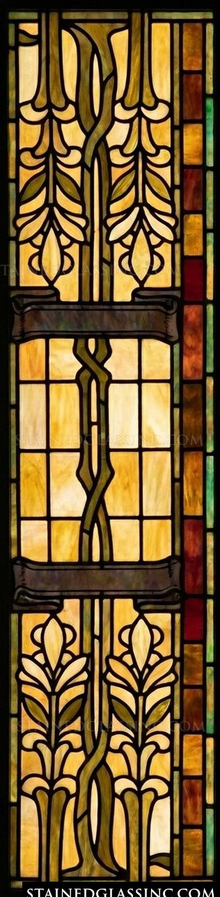 Embrace the sophisticated grace of the Art Nouveau movement with this stunning vertical design. Delicate botanical forms reach toward the top and bottom, their stylized leaves and stems weaving together in a rhythmic, organic dance that celebrates natural beauty. The composition is grounded by a warm, luminous amber palette that casts a soft, inviting glow.