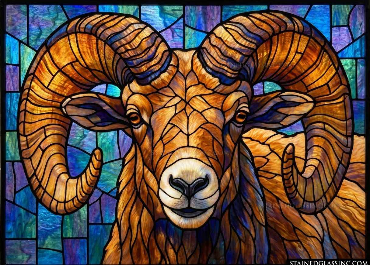 Bighorn Ram Portrait in Amber and Azure Panel #17369