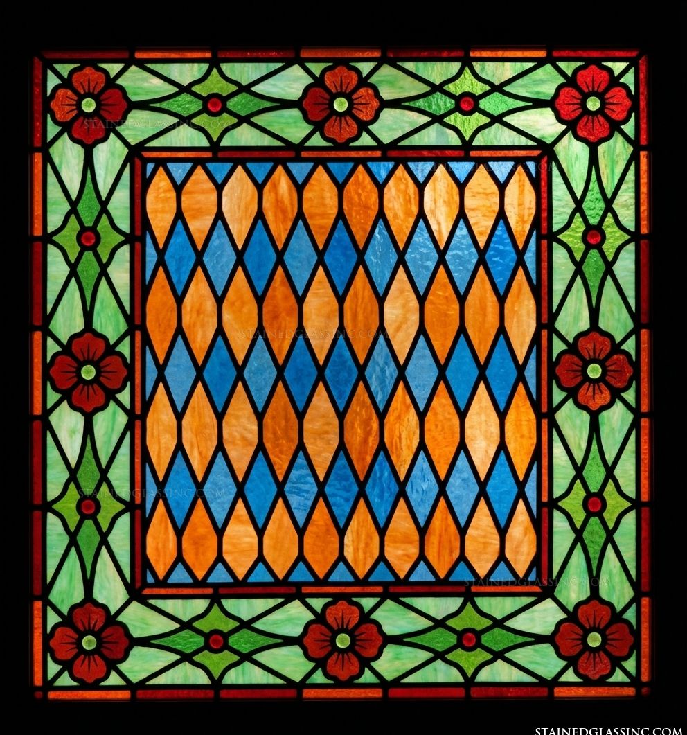 Diamond Lattice with Floral Border Panel #17460