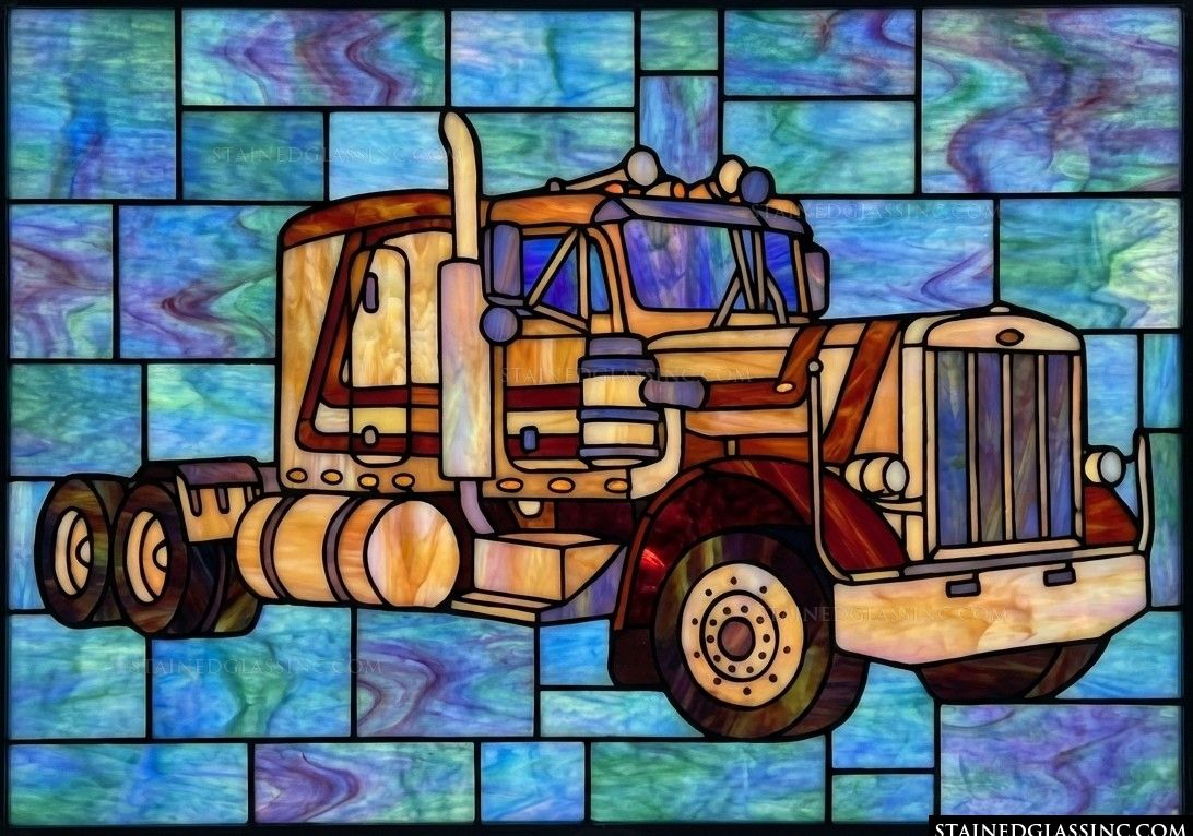 Set against a vibrant backdrop of swirling azure and cool-toned sky, the glowing colors bring the scene to life. This piece is a perfect tribute to the machines that connect our country, making it an excellent choice for anyone who appreciates heavy-duty machinery or the romantic notion of a life spent behind the wheel.
