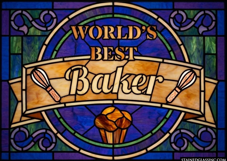 Honor the heart of the home with this charming, stained-glass-style tribute to the culinary arts. The design features a warm, amber-hued ribbon banner that proudly proclaims World's Best Baker, framed by stylized whisks that capture the joy of time spent in the kitchen.