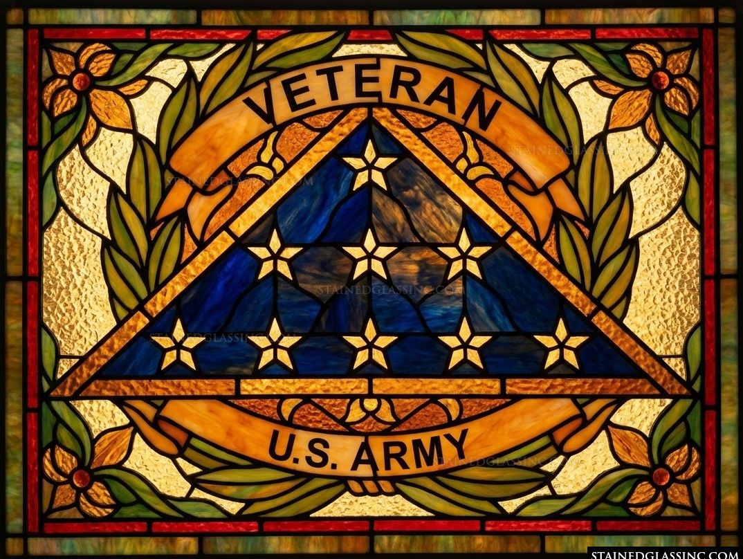 Surrounding the central emblem, a classic laurel wreath in rich olive and gold tones frames the scene, symbolizing honor and victory. This luminous design blends timeless patriotic symbolism with elegant, nature-inspired artistry, making it a fitting centerpiece for any space dedicated to honoring American history and the brave individuals of the U.S. Army.