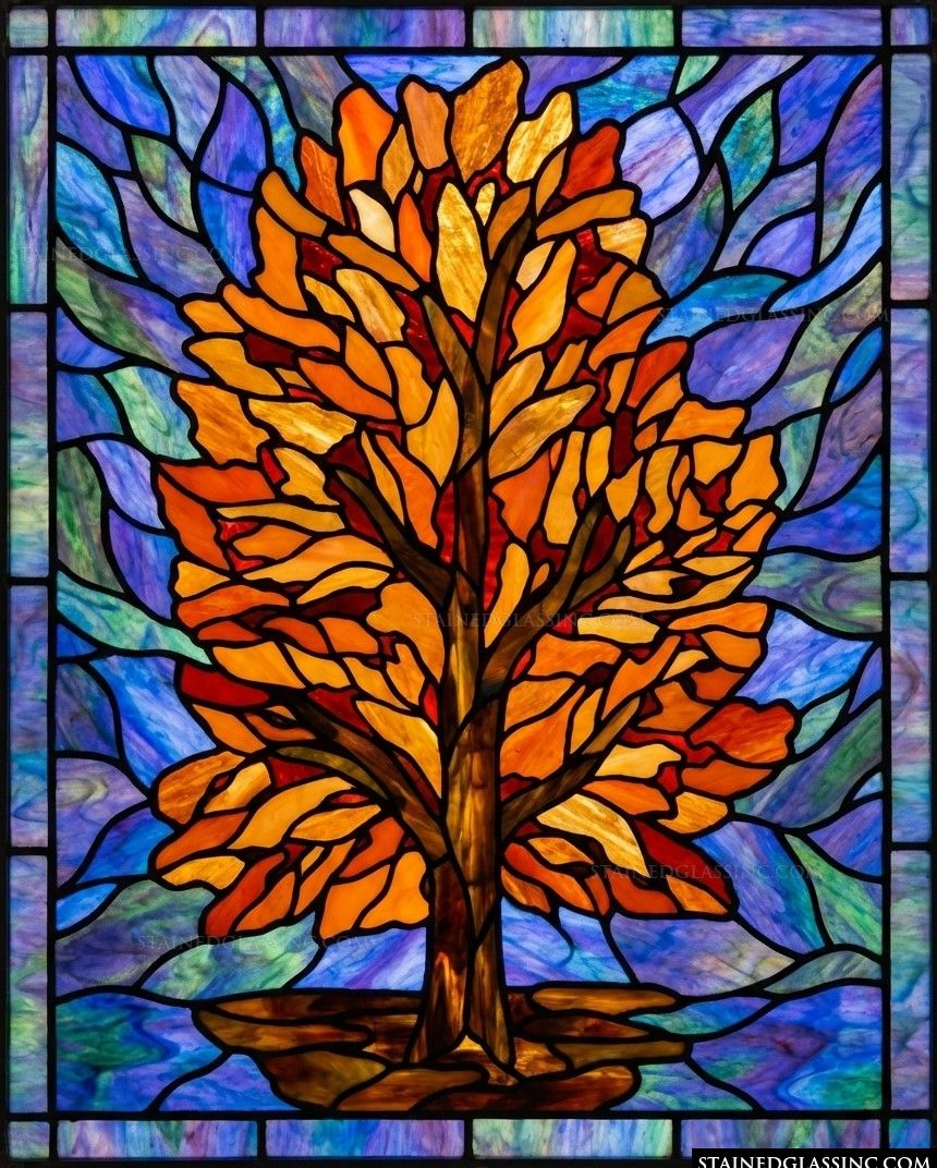 Bring the cozy warmth of a golden autumn afternoon into your home with this stunning seasonal masterpiece. A majestic tree stands at the center, its expansive canopy rendered in breathtaking shades of amber, honey, and burnt orange, capturing the fiery spirit of fall at its peak. Every leaf seems to glow with inner light, creating a feeling of abundant life and natural splendor.
