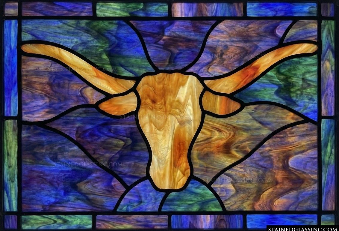Longhorn Bull Silhouette in Amber and Cobalt Panel #17560