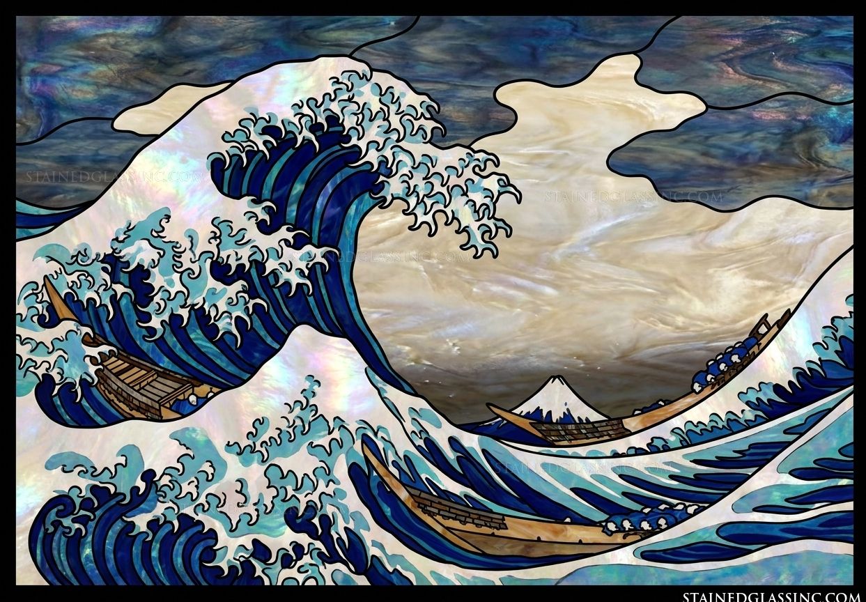 Experience the raw power and artistic grace of one of history's most celebrated scenes. This luminous design captures the surging motion of the Great Wave, with its frothing, claw-like crests reaching across the horizon. The composition masterfully balances the immense scale of the sea against the humble presence of traditional boats navigating the swells.