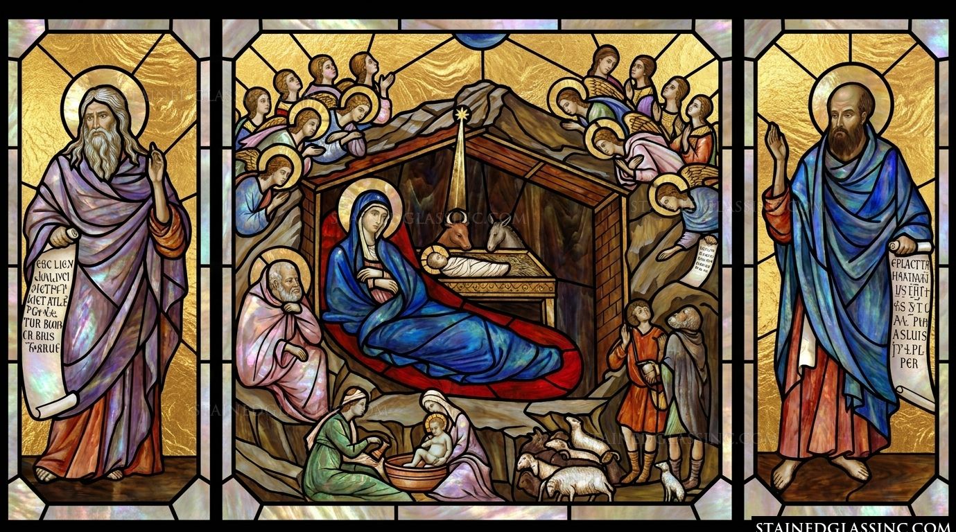 Celebrate the miracle of the Nativity with this exquisite three-part design. The central scene captures the tender stillness of the stable, where the Holy Family rests amidst a gathering of adoring angels and watchful shepherds. Every detail, from the soft gaze of Mary to the curious animals nearby, is brought to life with a radiant warmth that fills the scene with hope and reverence.